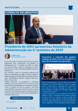 Também descreveu os investimentos e melhorias No dia 4 de setembro, houve reunião do Conselho