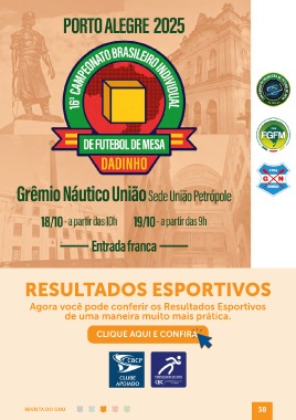 ESPORTE RESULTADOS ESPORTIVOS Agora você pode conferir os Resultados Esportivos de uma maneira muito mais prática. CLIQUE AQUI E CONFIRA. REVISTA DO GNU 38